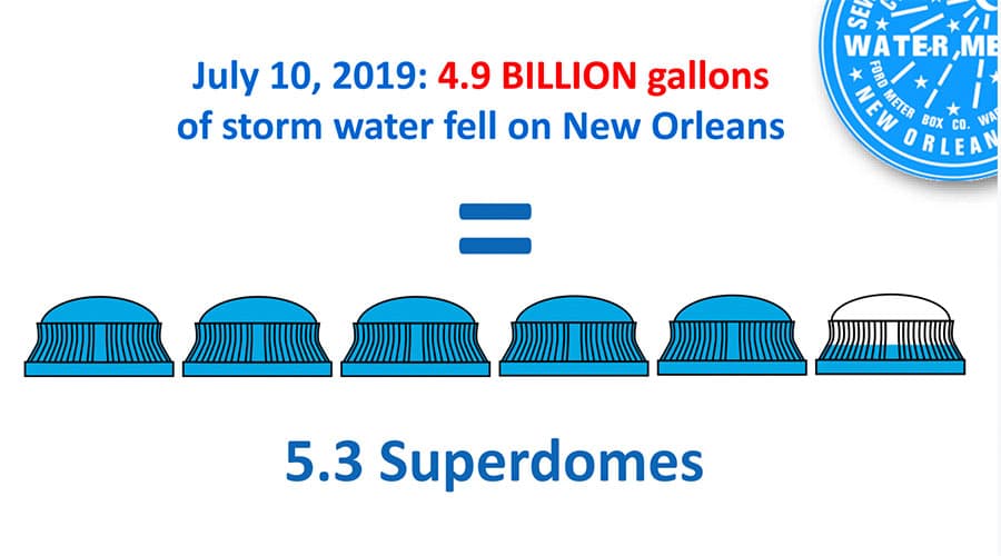 Based on data, we are seeing more intense rainstorms in our region. Did you know that during heavy rain, literally billions of gallons of water can dump on our neighborhoods? That’s right…billions…as in five Superdomes full of water during a single storm! And science says it’s going to rain more and more. All that rainwater has to go somewhere, and when the pumps can’t keep up, it floods.